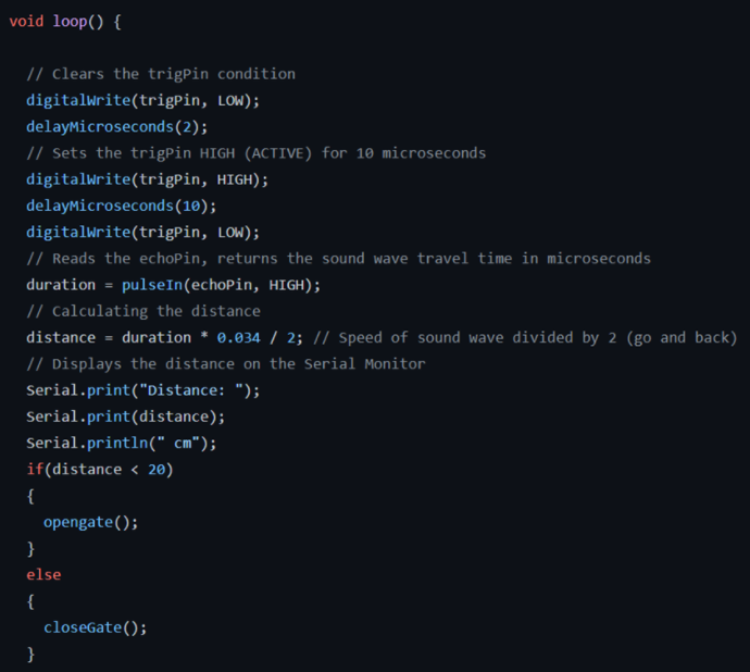 ·我們已經(jīng)將輸出引腳連接到伺服電機(jī)。我們正在旋轉(zhuǎn)伺服電機(jī)95度,所以門可以打開