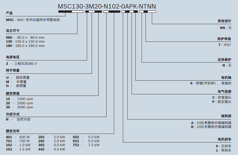 力士樂MSC伺服電機(R988114069)型號匹配表: